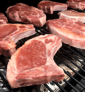 The fat on these pork chops tastes like candy!